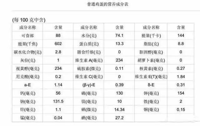 鸡蛋的营养成分比较全面,蛋清中富含优质蛋白、核黄素、尼克酸、生物素和和钙、磷、铁等物质;而蛋黄中富含卵磷脂、维生素A、维生素D,且含有较多的铁、磷、硫、钙。