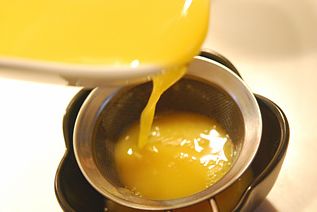 (用筛网过筛两遍,去掉蛋液中的空气。)